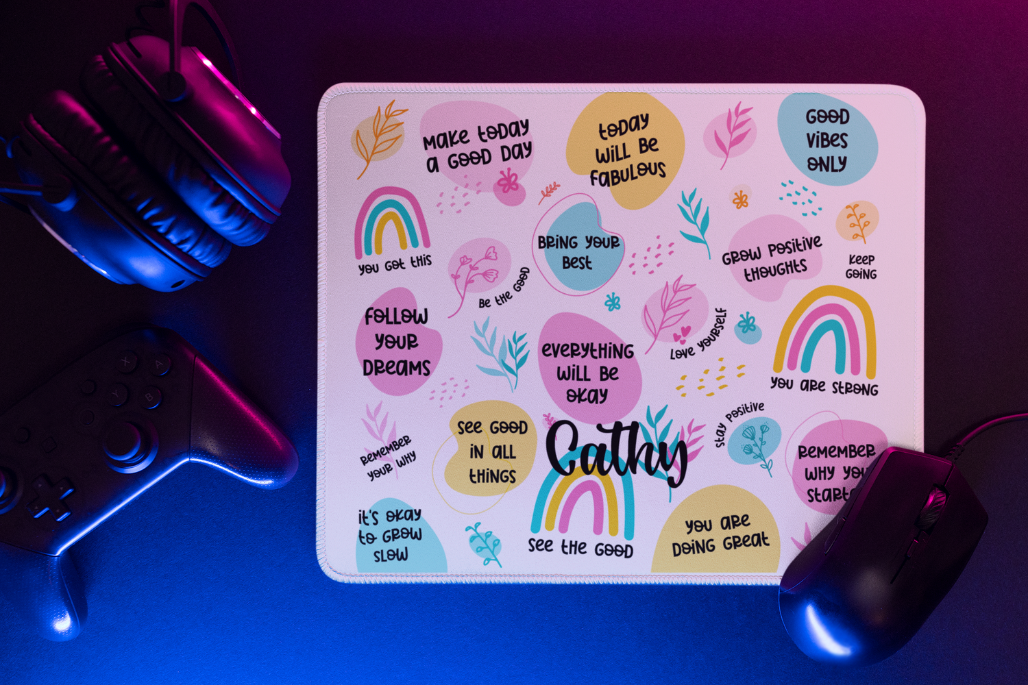 Personalized Mental Health Desk Mat - Inspiring Affirmations & Colorful Design