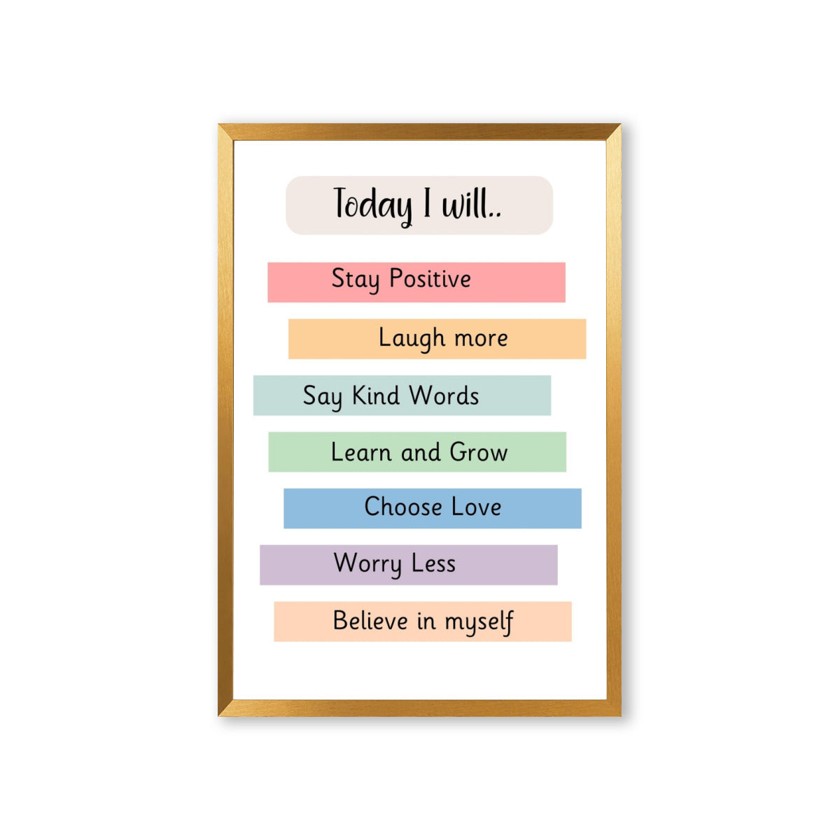 "Today I Will" Affirmations Poster with Frame – Empower Your Day